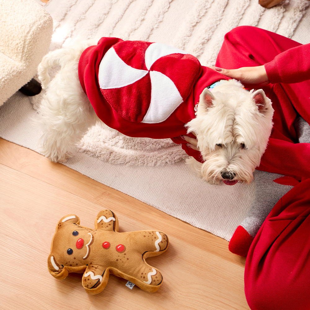 Divertido y adorable, este juguete para perro en forma de galleta de jengibre es perfecto para jugar y morder con alegría. ¡Tu peludo se divertirá horas con esta dulce tentación!
