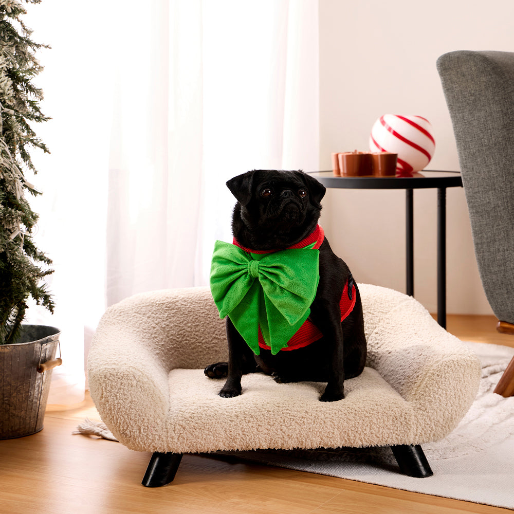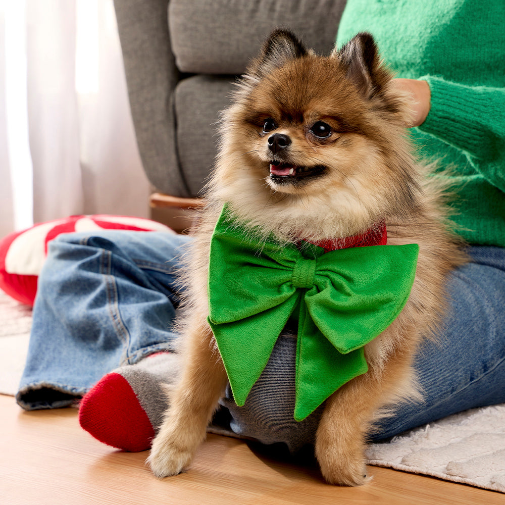 ¡Celebra la Navidad con estilo! Esta pechera inspirada en un regalo, con fondo rojo y un suave moño oversize verde, es divertida, adorable y ajustable. Perfecta para que tu mascota luzca festiva y feliz en estas fechas especiales.